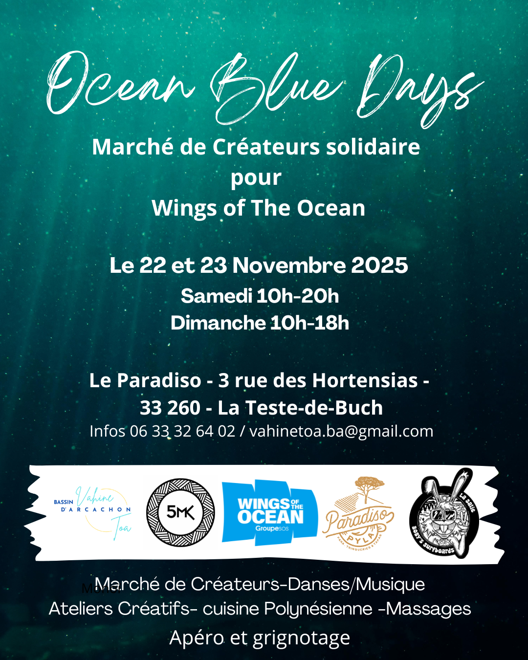 renseignements et resas au 06 33 32 64 02 ou 06 79 93 02 20 ou par internet