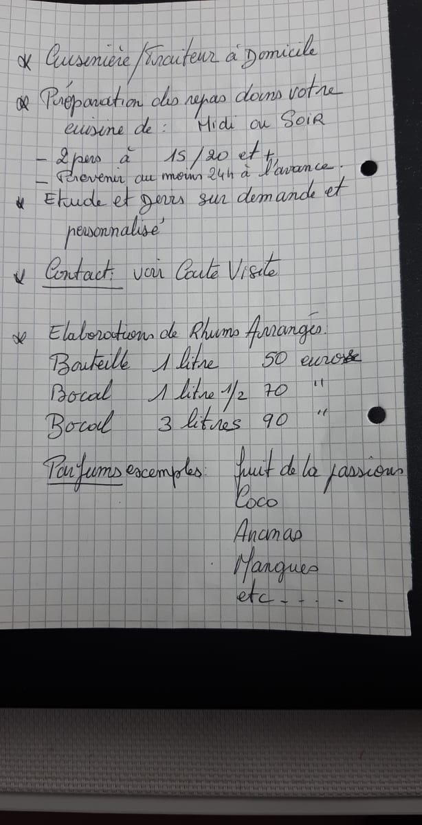 Je me déplace tout autour du Bassin…..,et bien plus loin si vous souhaitez profiter de votre piscine, de votre terrasse entre amis ou en famille pour déguster mes accras maison, les boudins antillais et leur sauce chien, mes rhums arrangés, mes planteurs aux fruits frais….