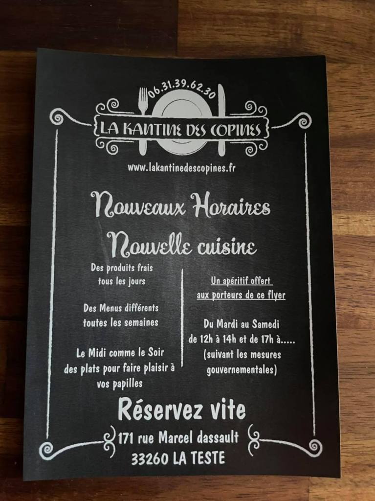 Réservez sur le site www.lakantinedescopines.com ou par sms