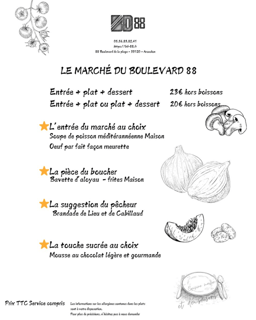 BD88 – 88, Boulevard de la Plage – 33120 Arcachon – 05 56 83 82 41 – restaurant.boulevard88@orange.fr instragram : @boulevard_88
