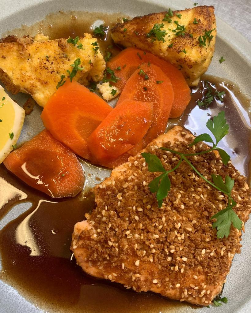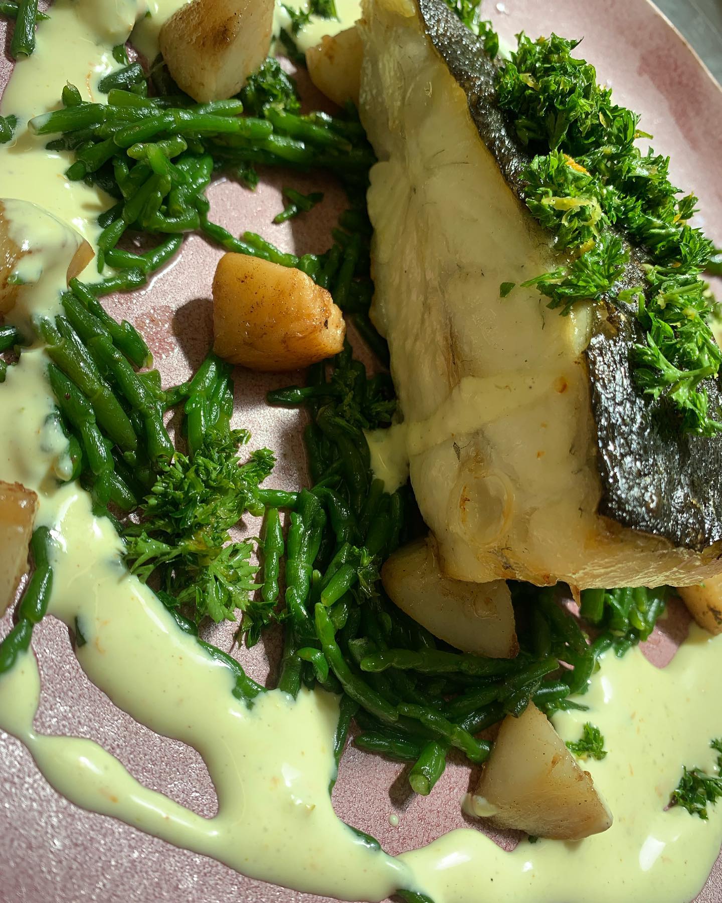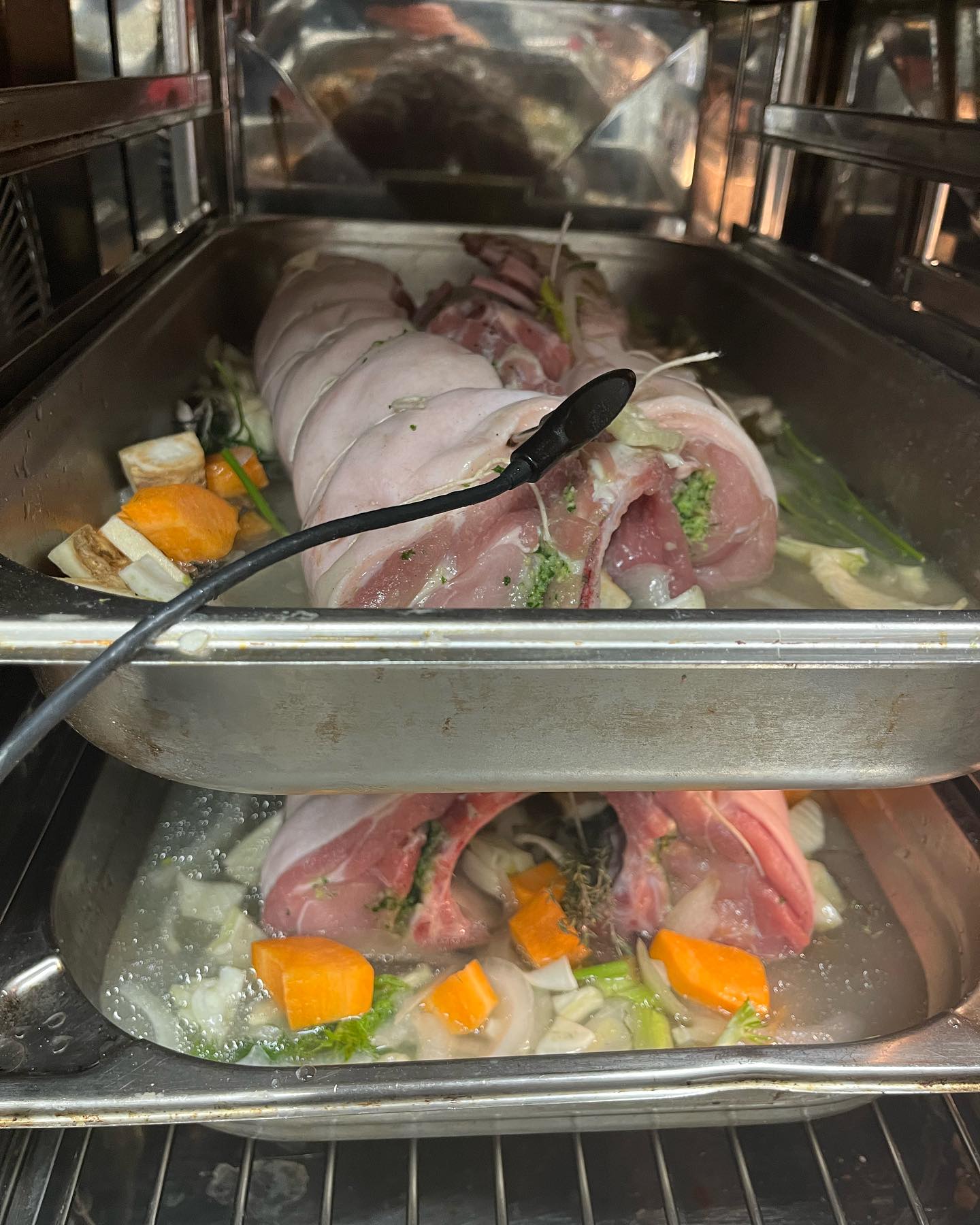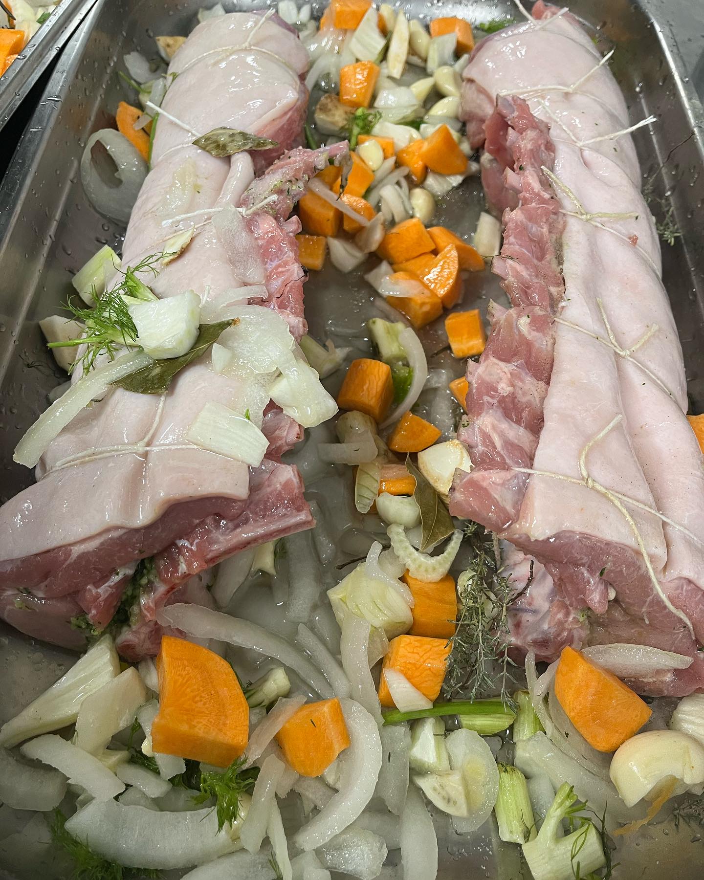 Cochon de lait basse température – légumes d’hiver – sauce estragon crème d’ail