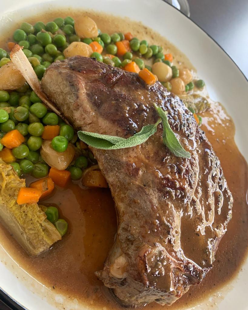 Belle côte de veau de 400grs – jus à la sauge – petits pois à la française