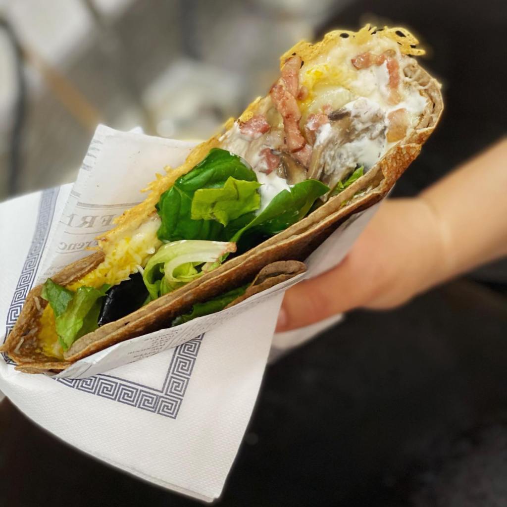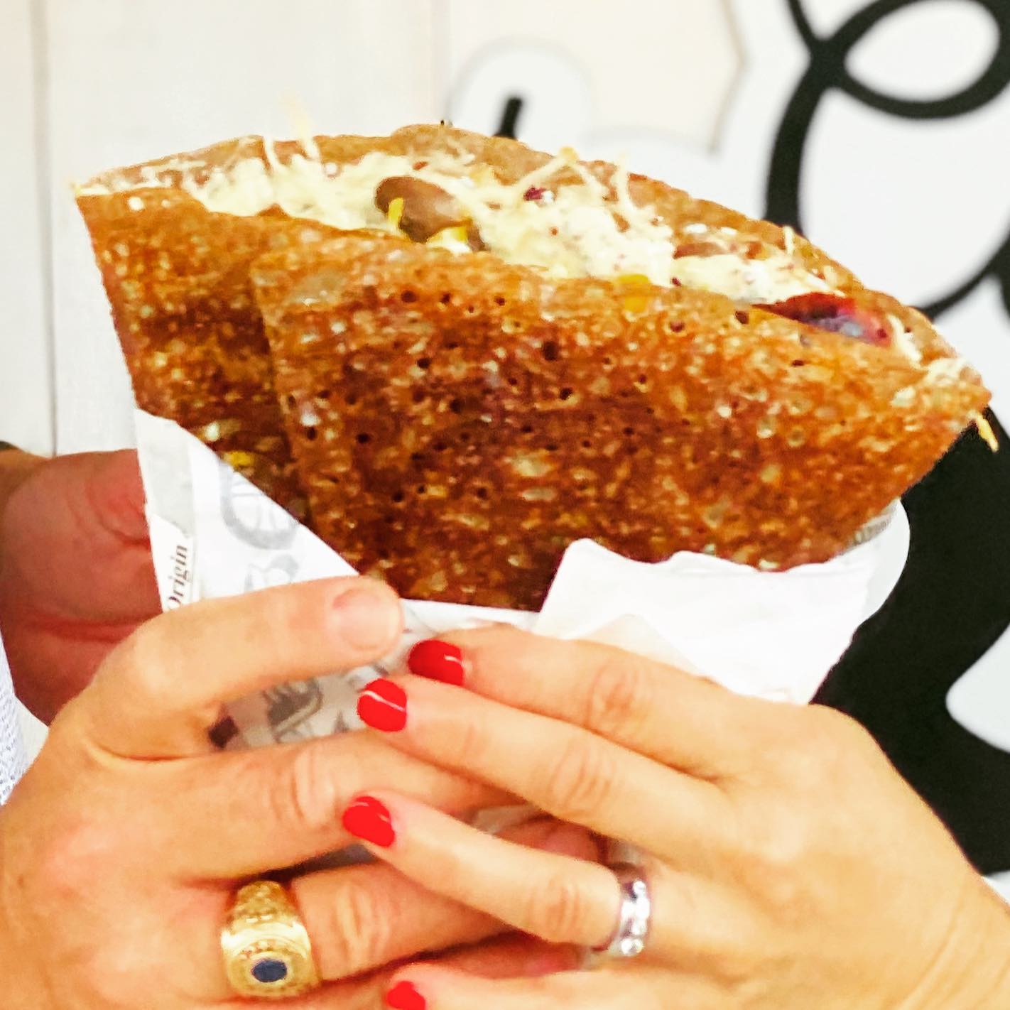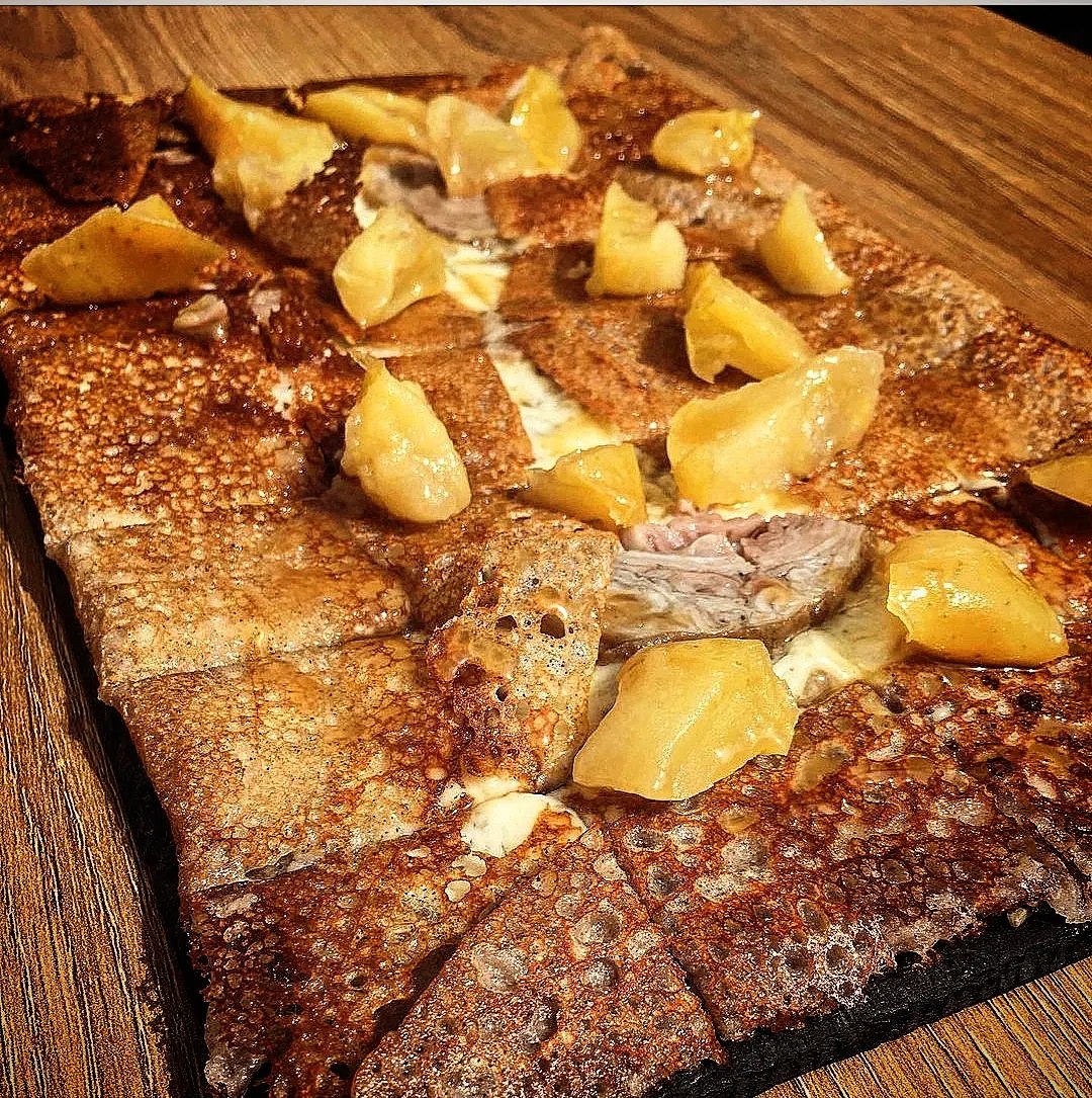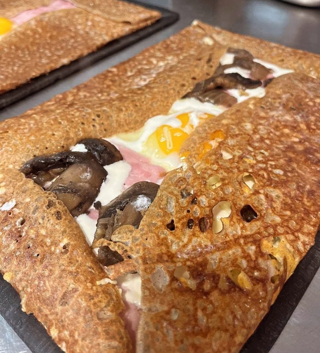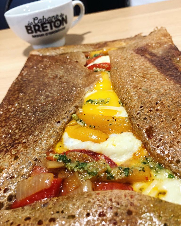 La « Nonna »: Galette de Blé noir + Oeuf + Emmental + Piperade maison + Jambon Serrano + Pesto vert![]()