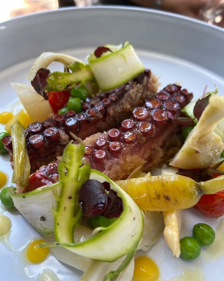 Poulpe de Galice croustillant, légumes en escabèche et artichaut poivrade
