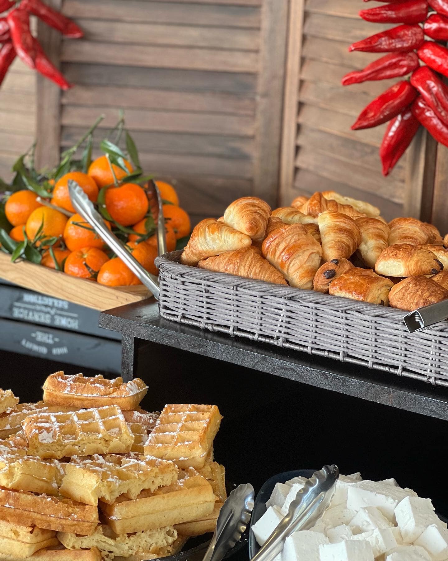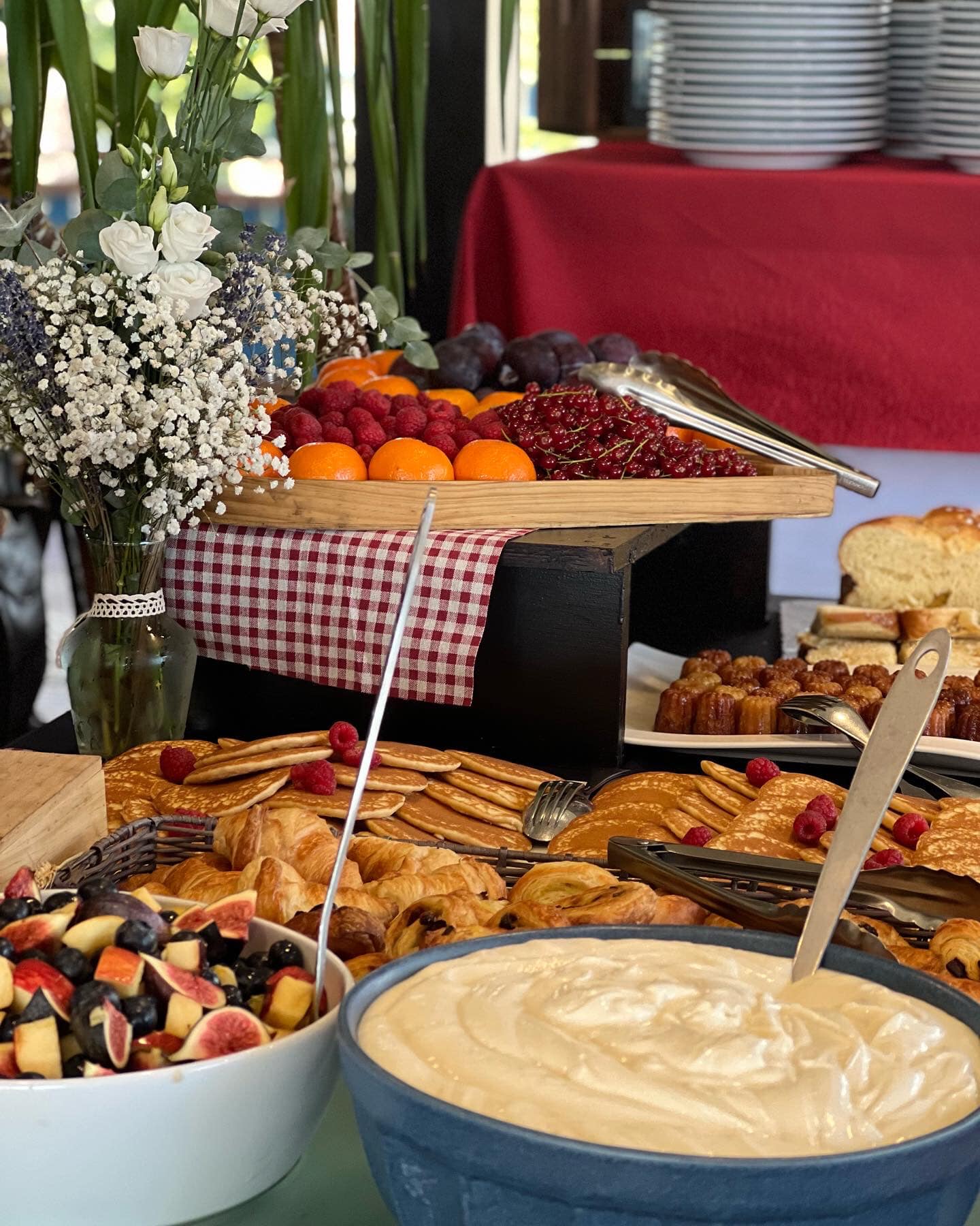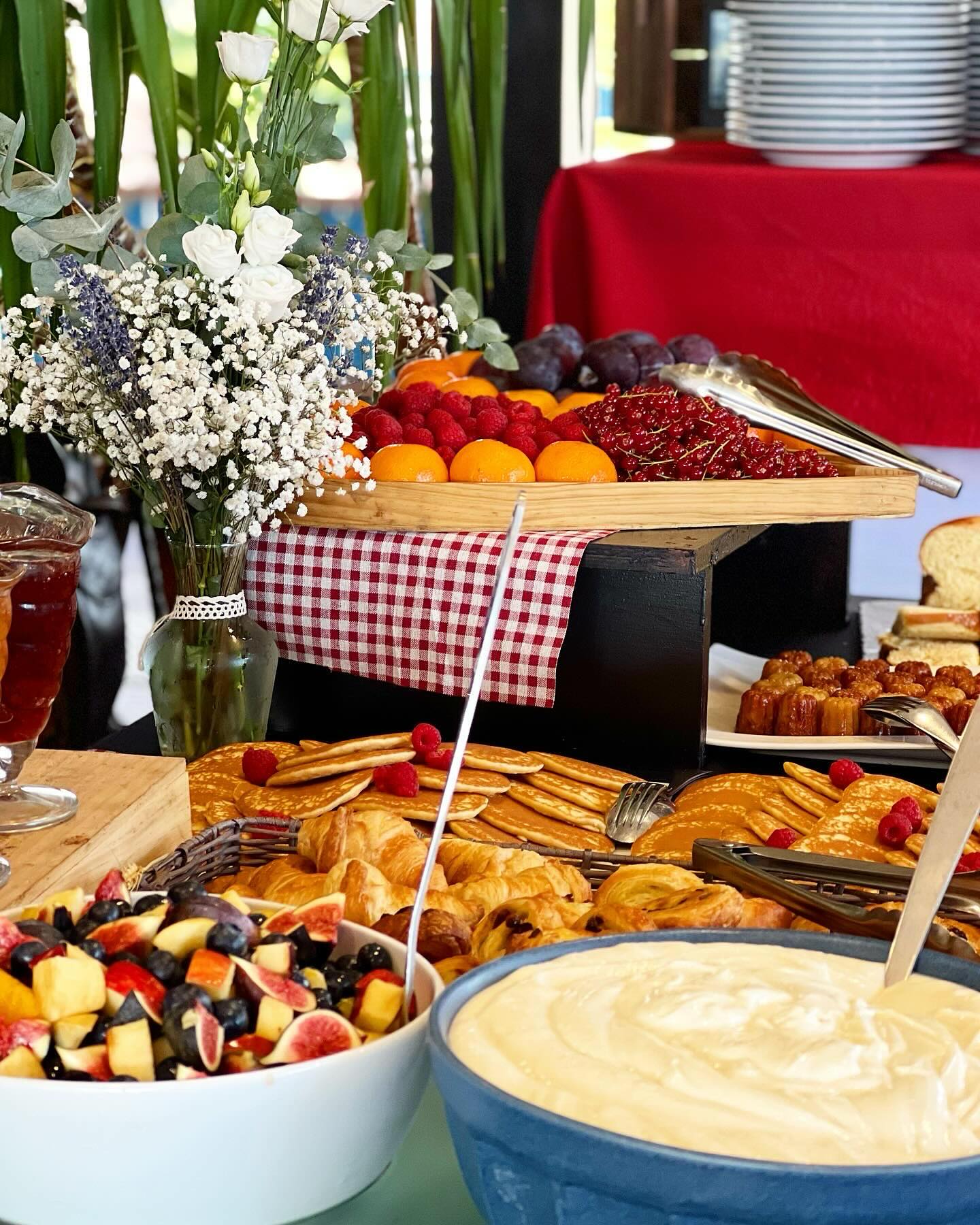l’assortiment du petit déjeuner, les crêpes,