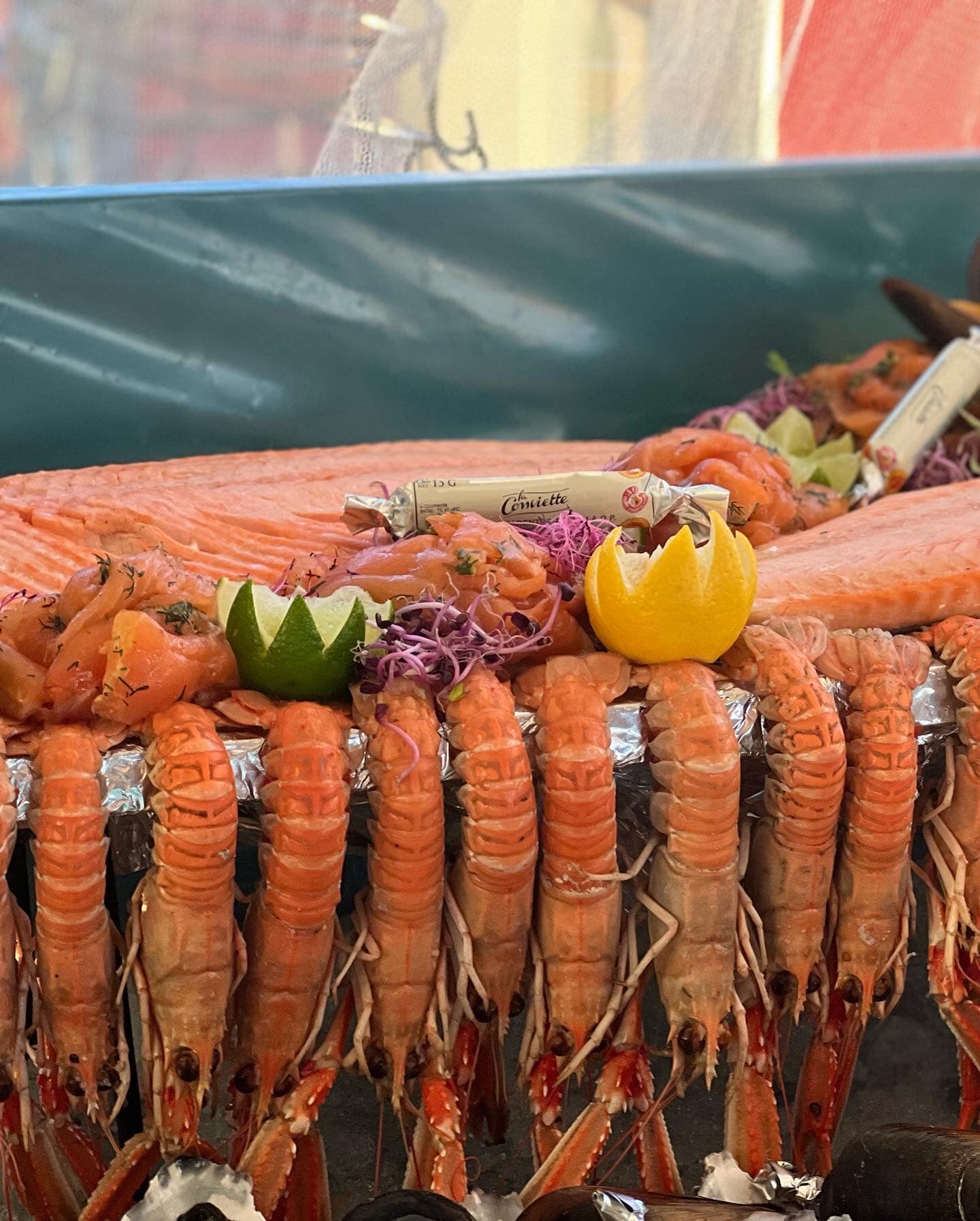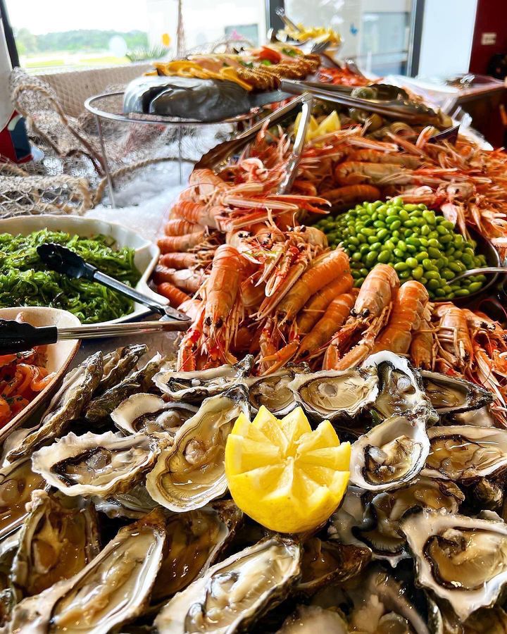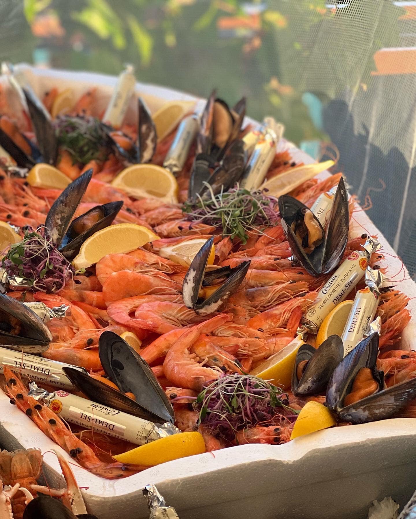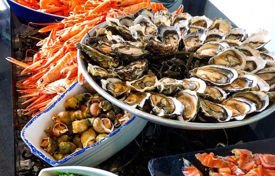 Pour 35€ par personne ( 15€ pour les enfants) à base de produits frais et maison vous avez : fruits de mer