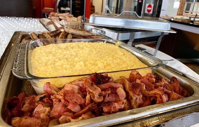 Sans oublier les essentiels du petit-déjeuner : céréales, lait, pancakes, œufs, bacon, boissons chaudes, jus de fruits… ![]()