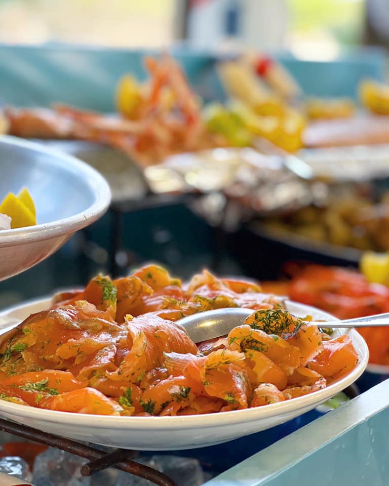 Pour 42€ par personne (18€ pour les enfants), dégustez un buffet gourmand à base de produits frais et faits maison :