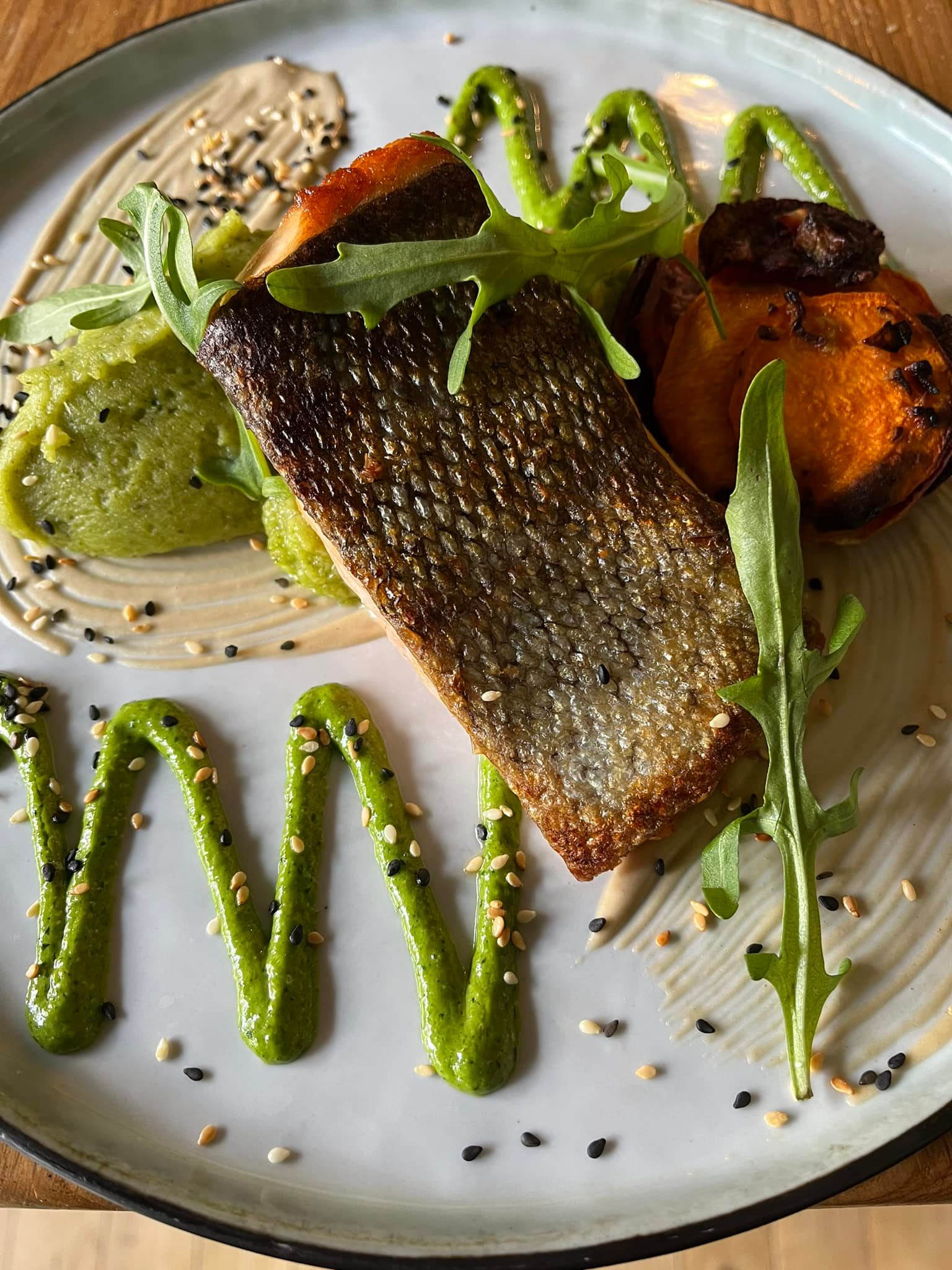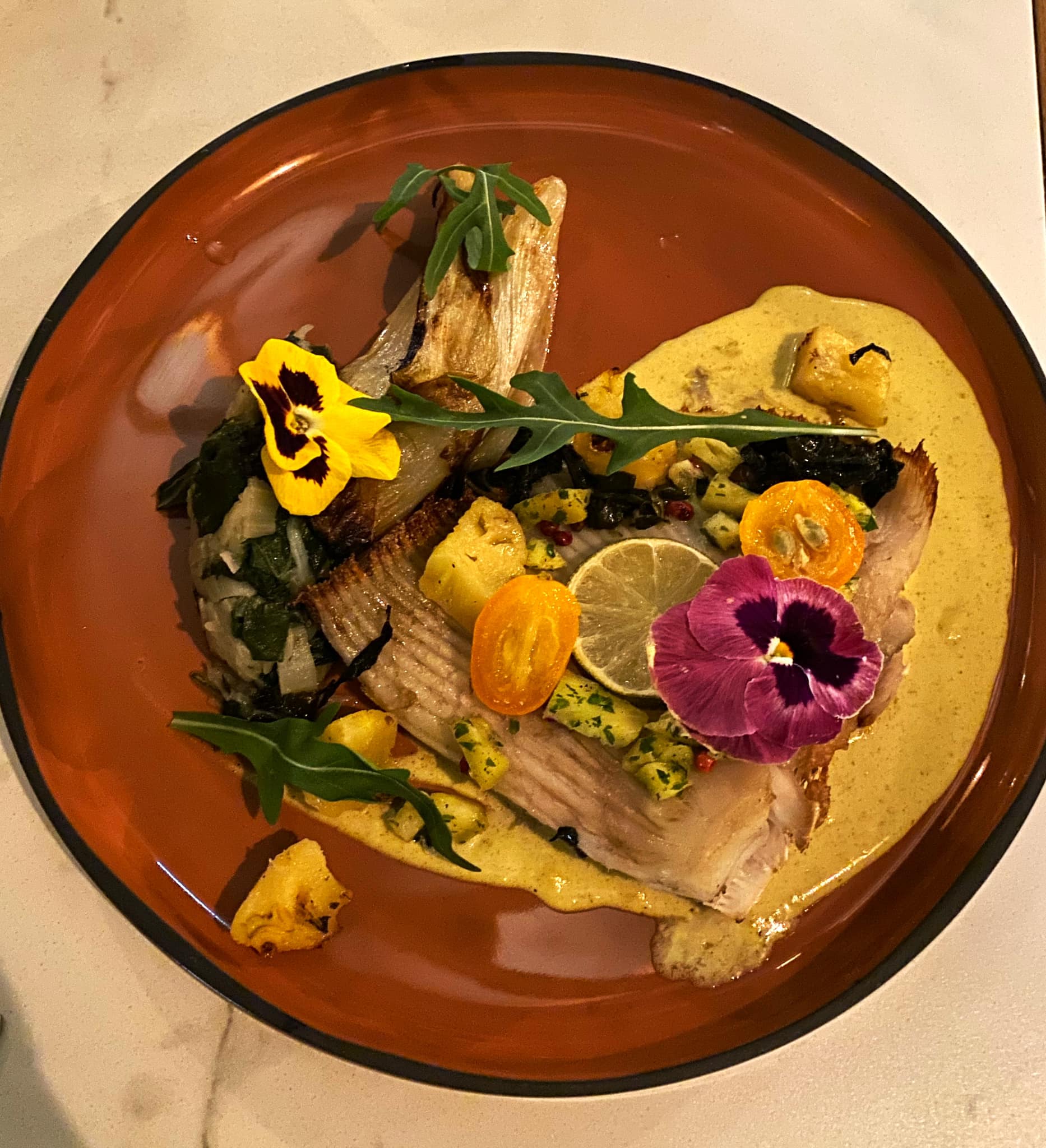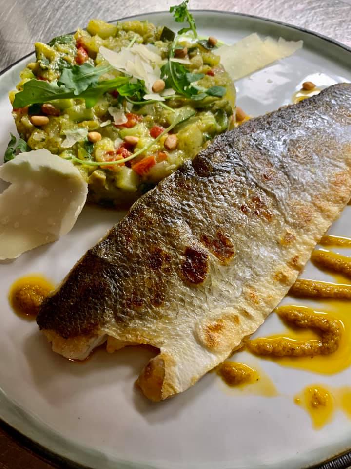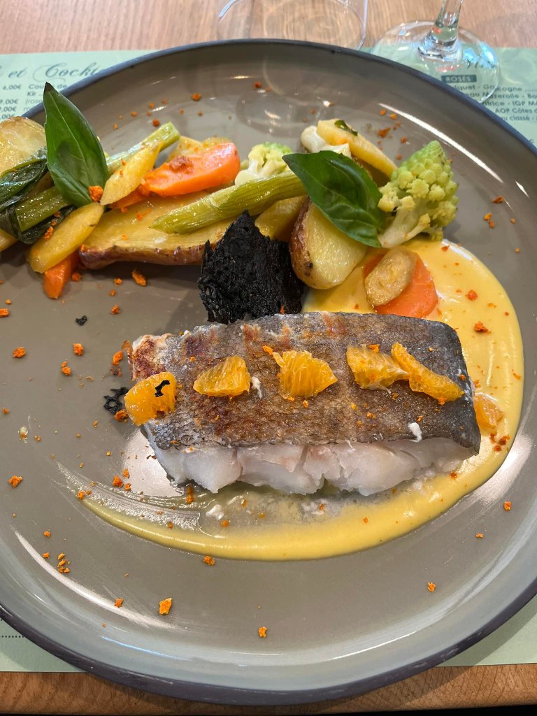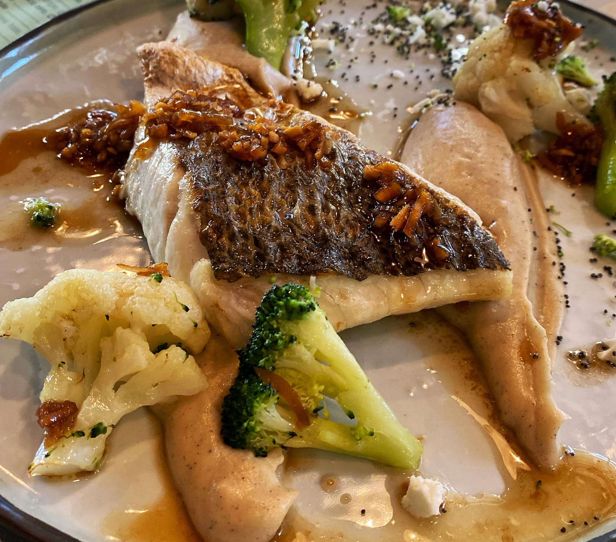 – pave de maigre, crémeux de chou fleur grillé, vinaigrette au gingembre