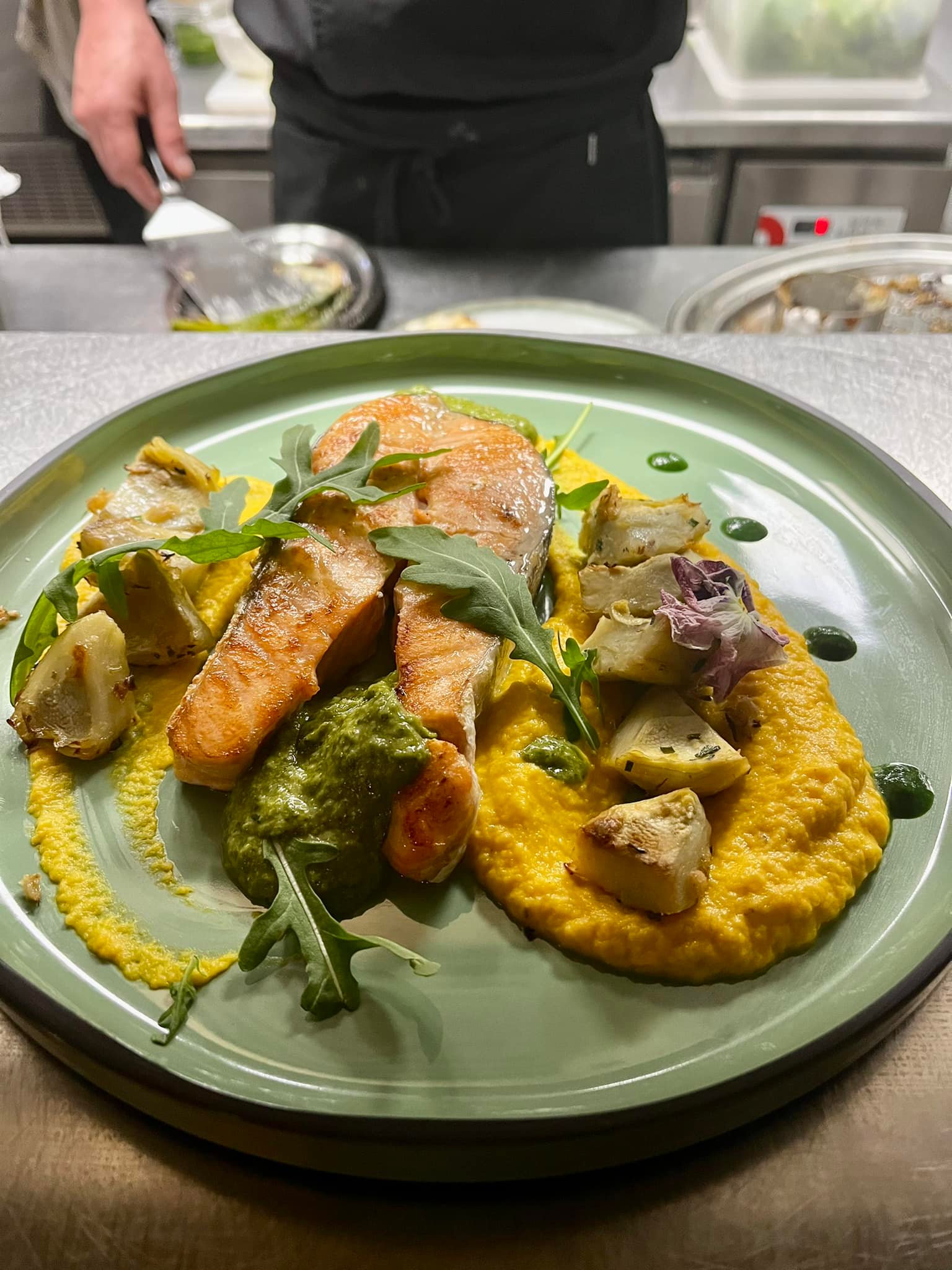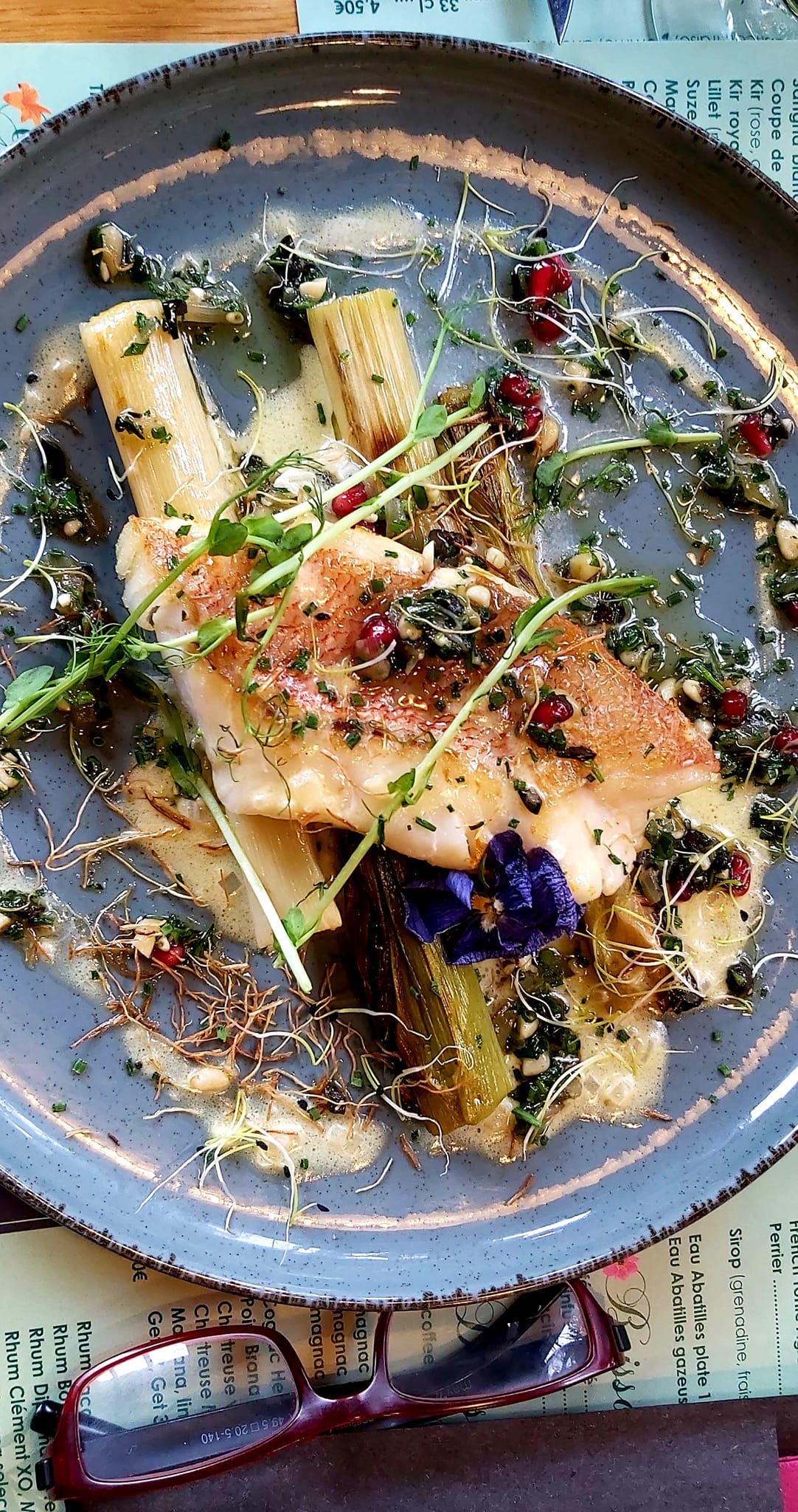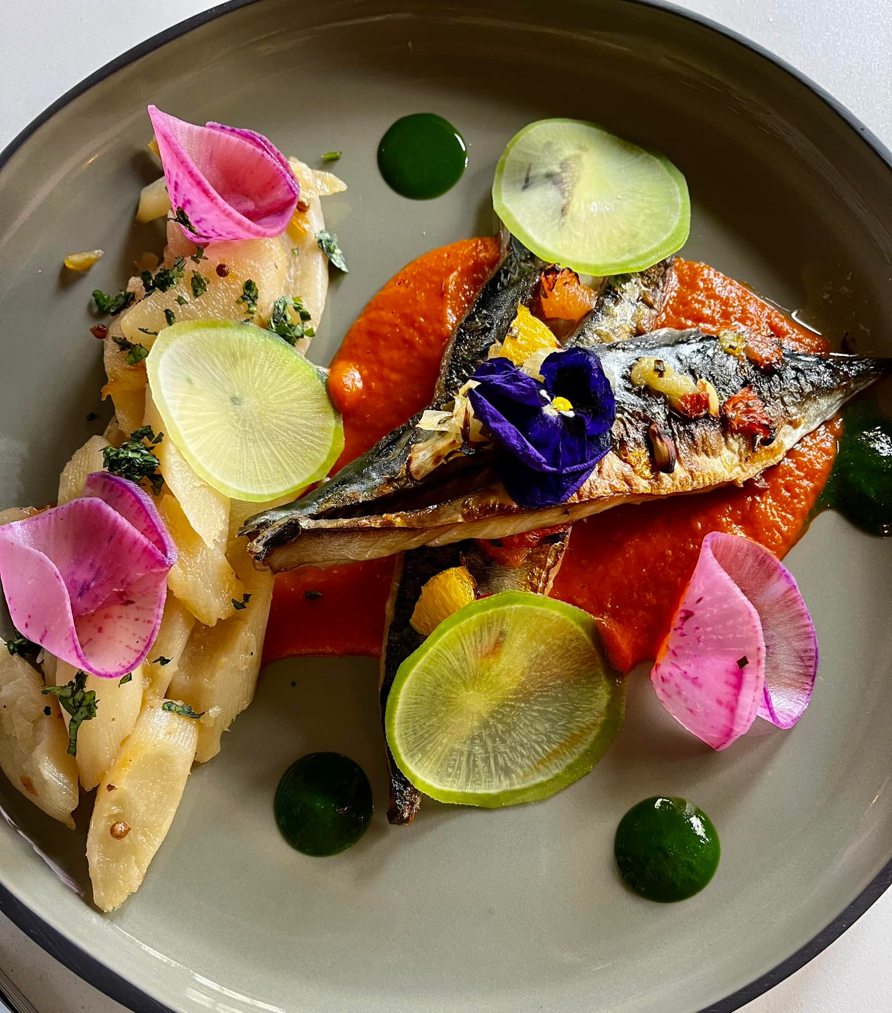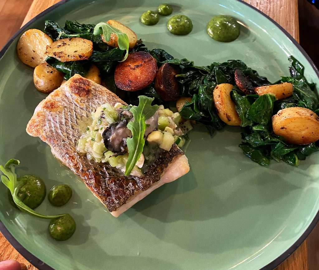 – pave de maigre, crémeux de chou fleur grillé, vinaigrette au gingembre