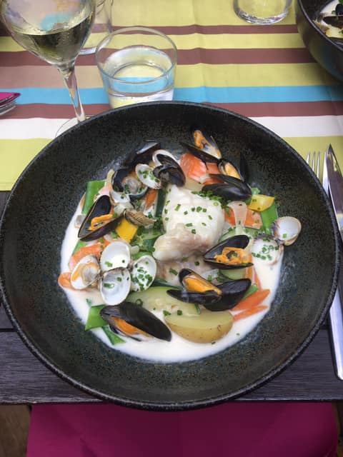 EXTRAITS Joues de bœuf braisée, sauce au vin rouge, purée truffée … et son Pot-au-feu de la mer façon thaï ![]()