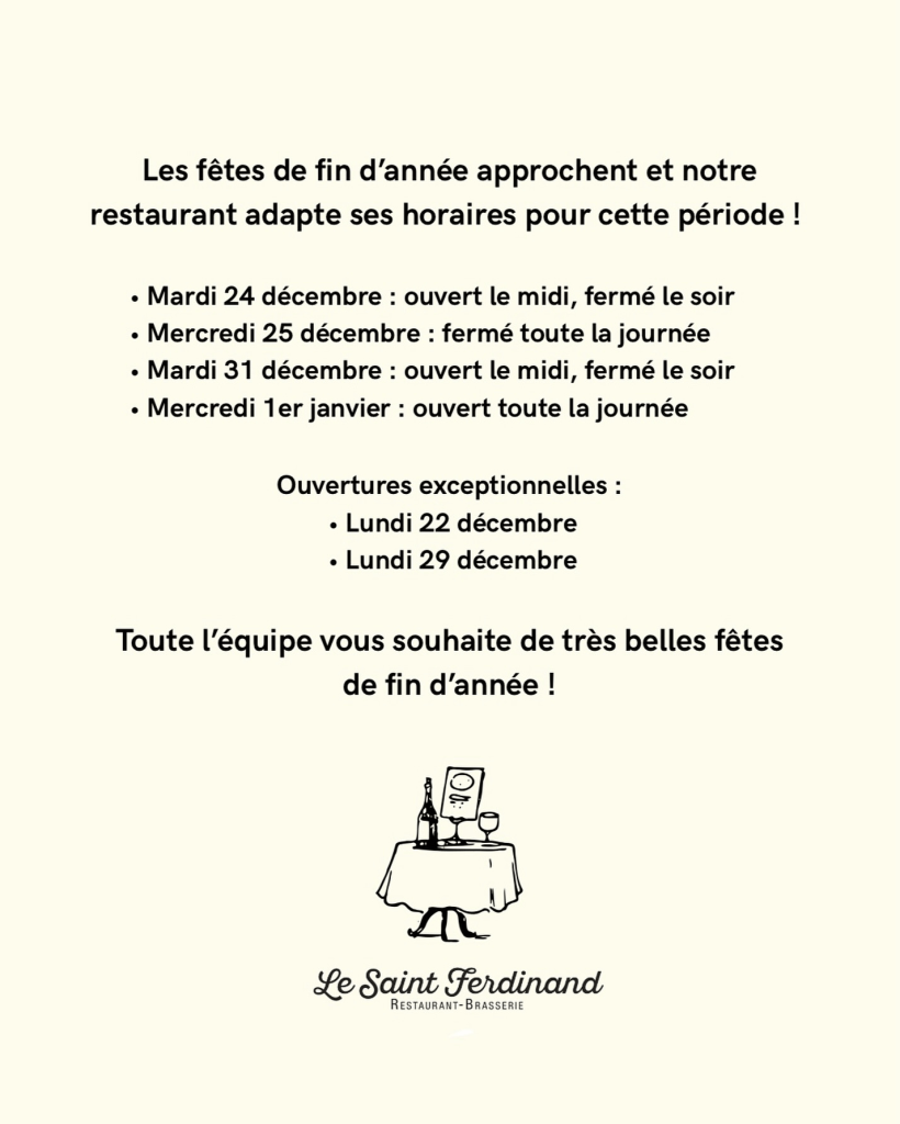 Le Saint Ferdinand réouvre ses portes ce Week end de 11h à 17h pour de la vente à emporter