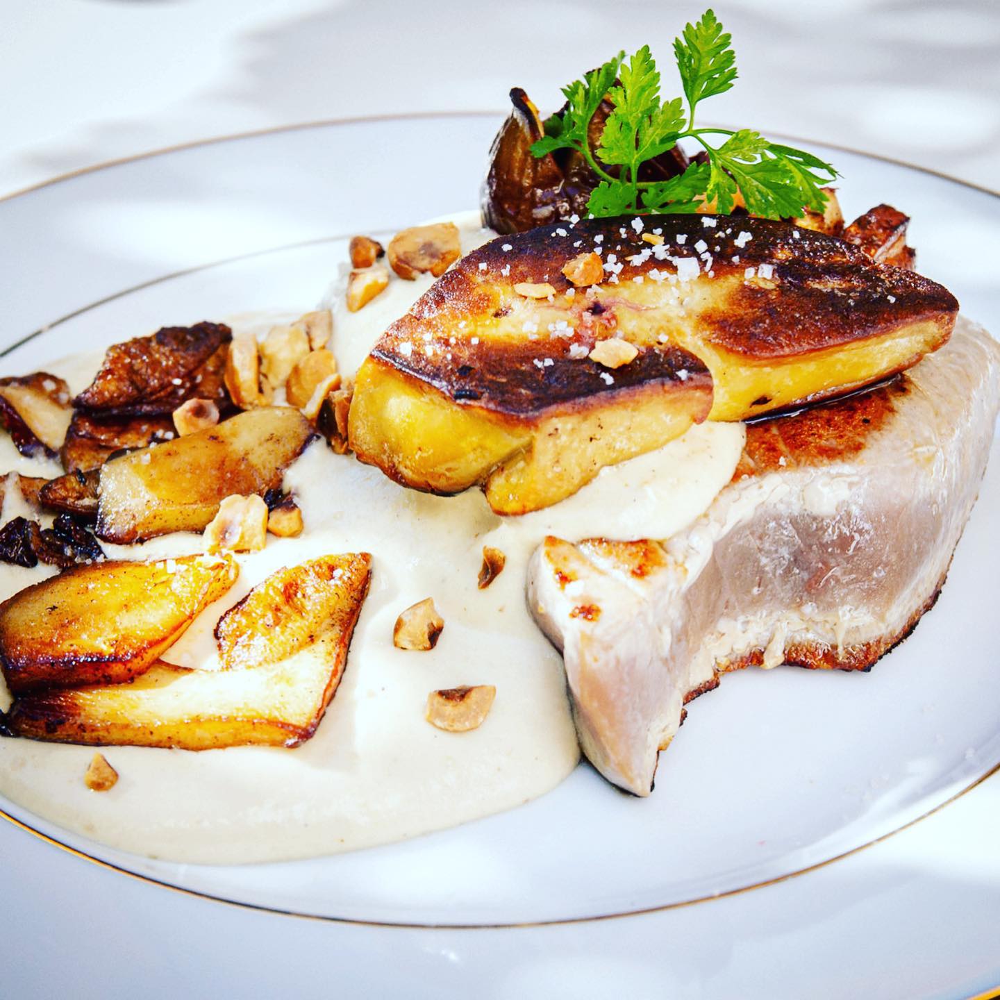 • Foie frais poêlé, crémeux pomme de terre, noisettes