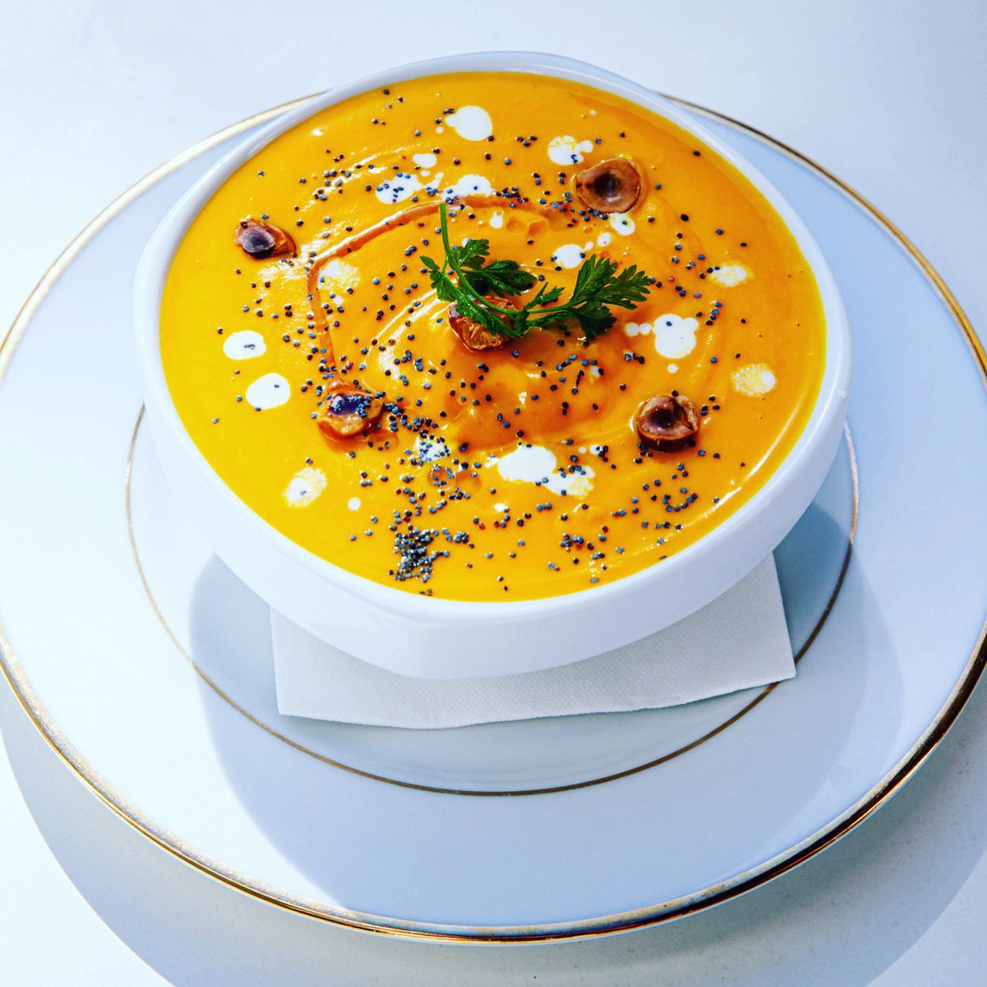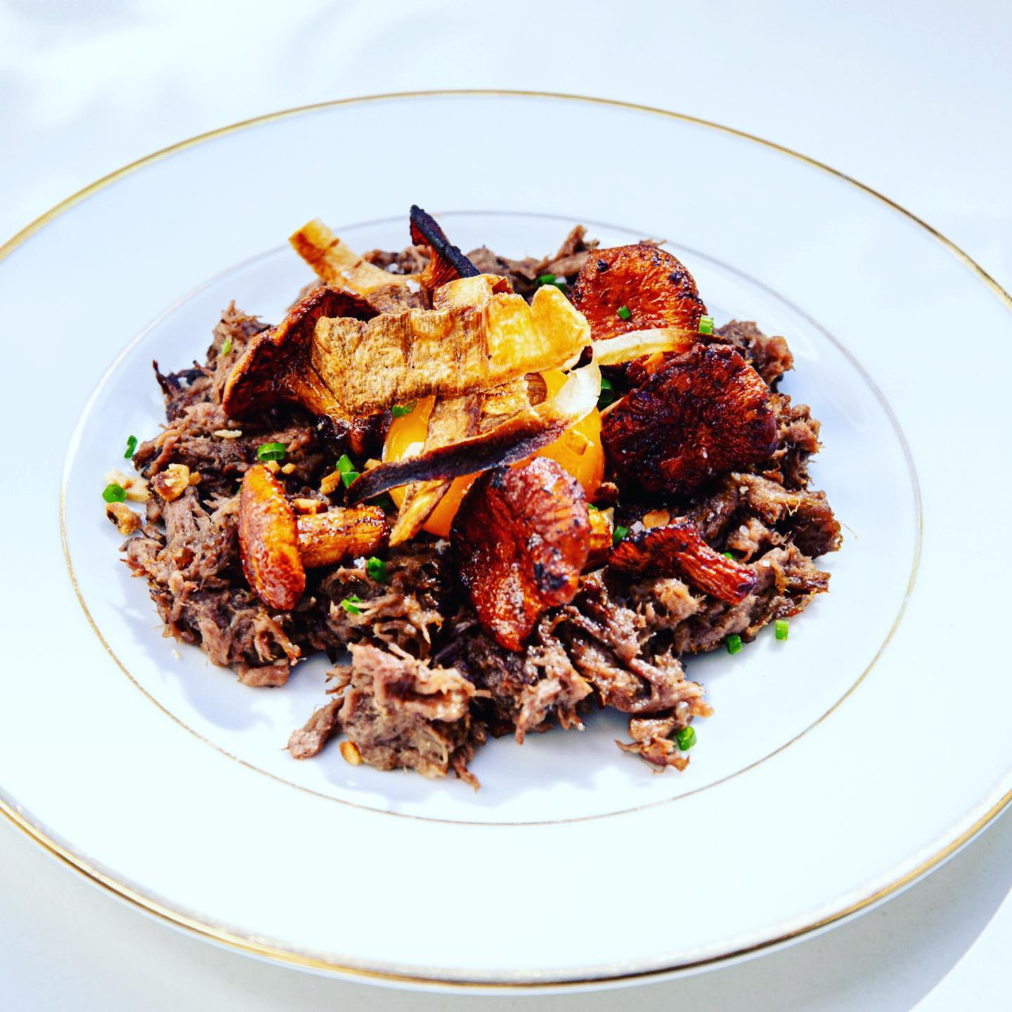 • Suprême de volaille, girolles, mousseline de panais, crème fumée et jus de veau