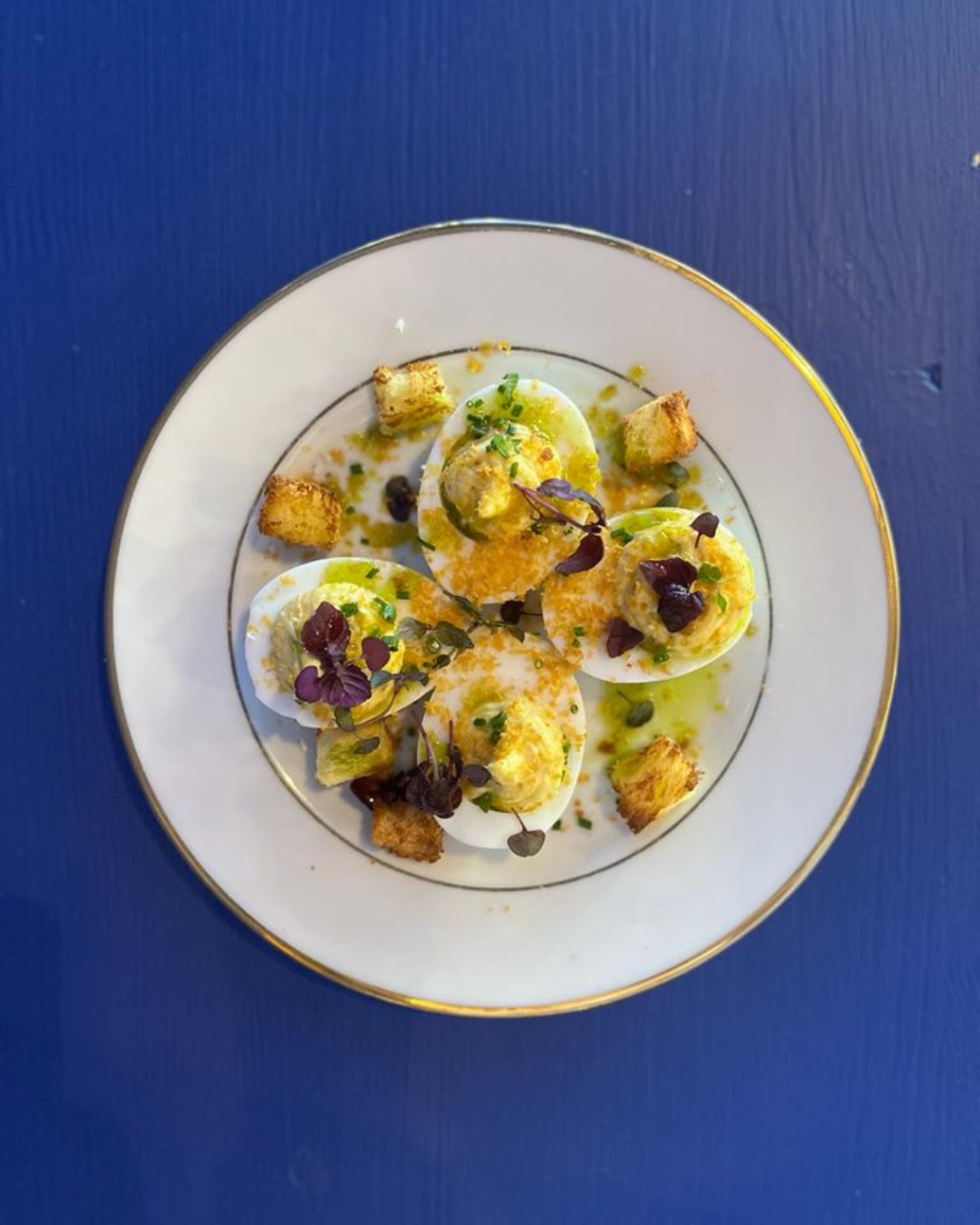 • Oeufs mimosa, croûtons, poutargue et shiso