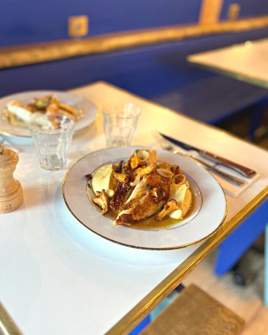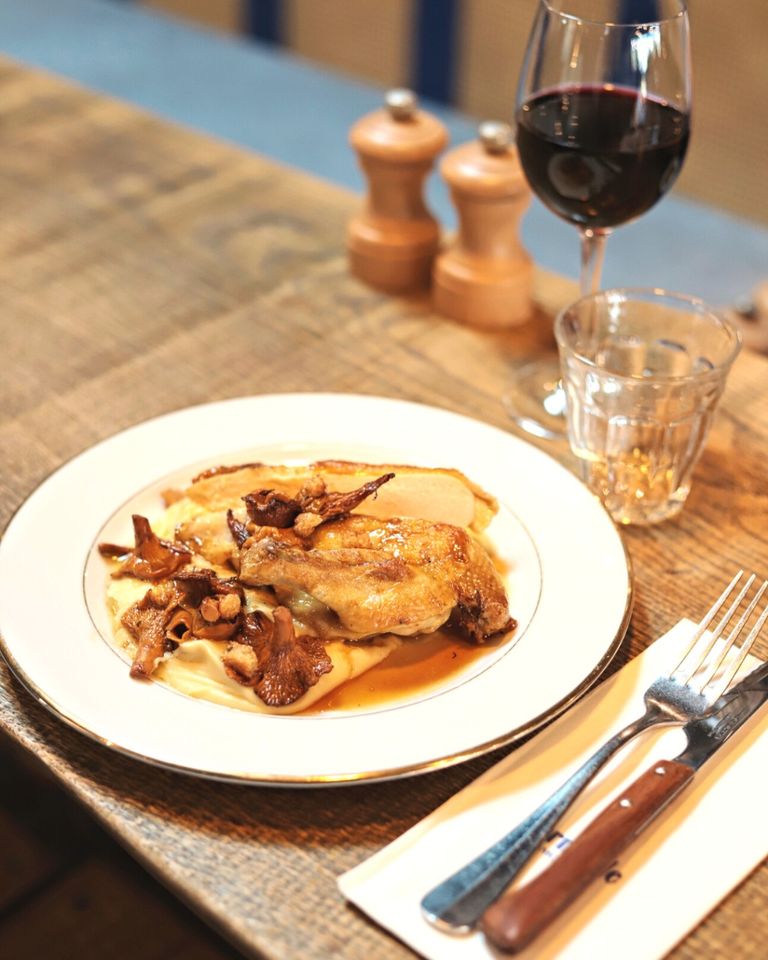 Notre nouveau plat de saison : suprême de volaille, girolles, mousseline de panais, crème fumée et jus de veau