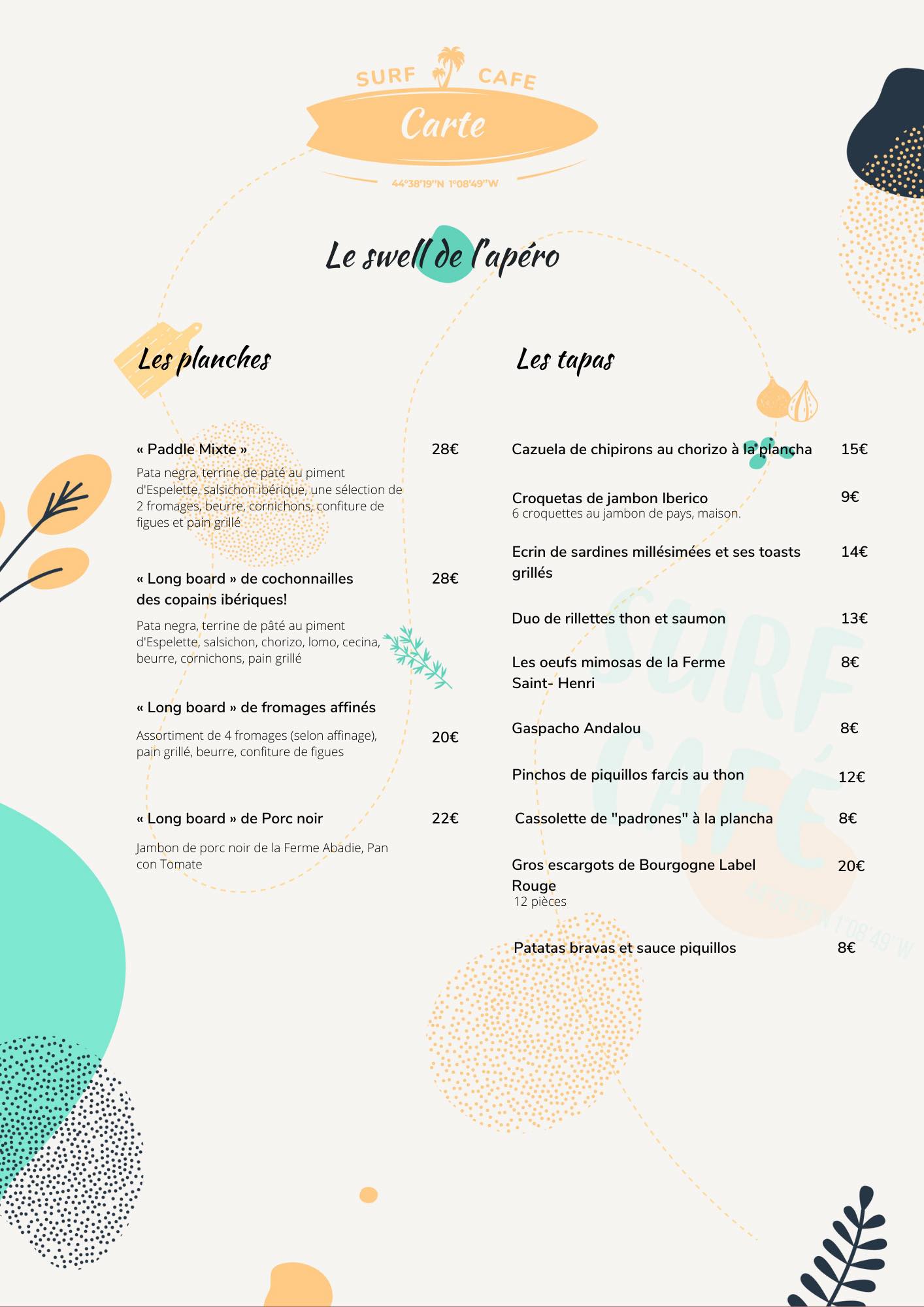 Le surf café vous propose des formules toutes prêtes ou du sur mesure selon vos envies et vos besoins ! Notre établissement vous propose une belle carte composée produits frais et de saisons !