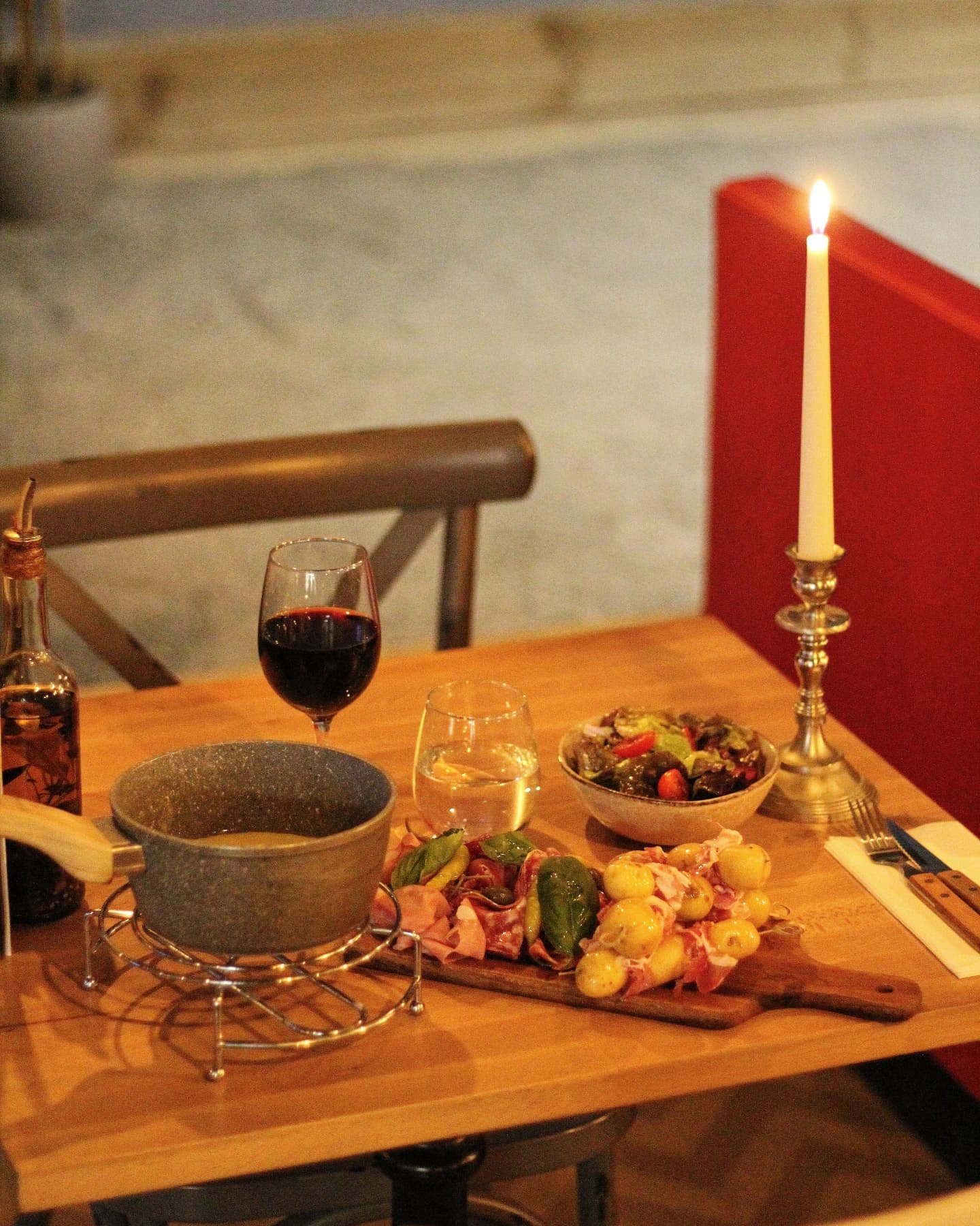 Plat incontournable de l’hiver, nous la proposons à nouveau au restaurant, tous les mardis et mercredi soir ! Dans cette formule à 19,50€ par personne, vous pourrez déguster une fondue de Taggelio, Gorgonzola et Pecorino au poivre, accompagnée d’une planche de charcuterie et de brochettes de pancetta et pommes de terre grenaille ![]()