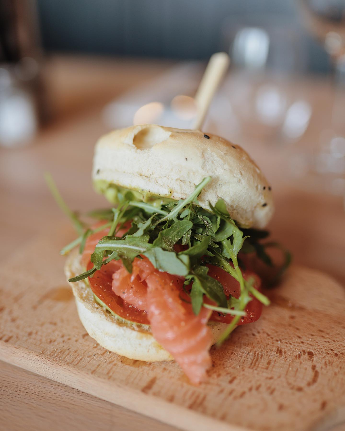 • BURGER FRAIS : Guacamole, avocat, saumon fumé, tomate, citron, roquette, concombre